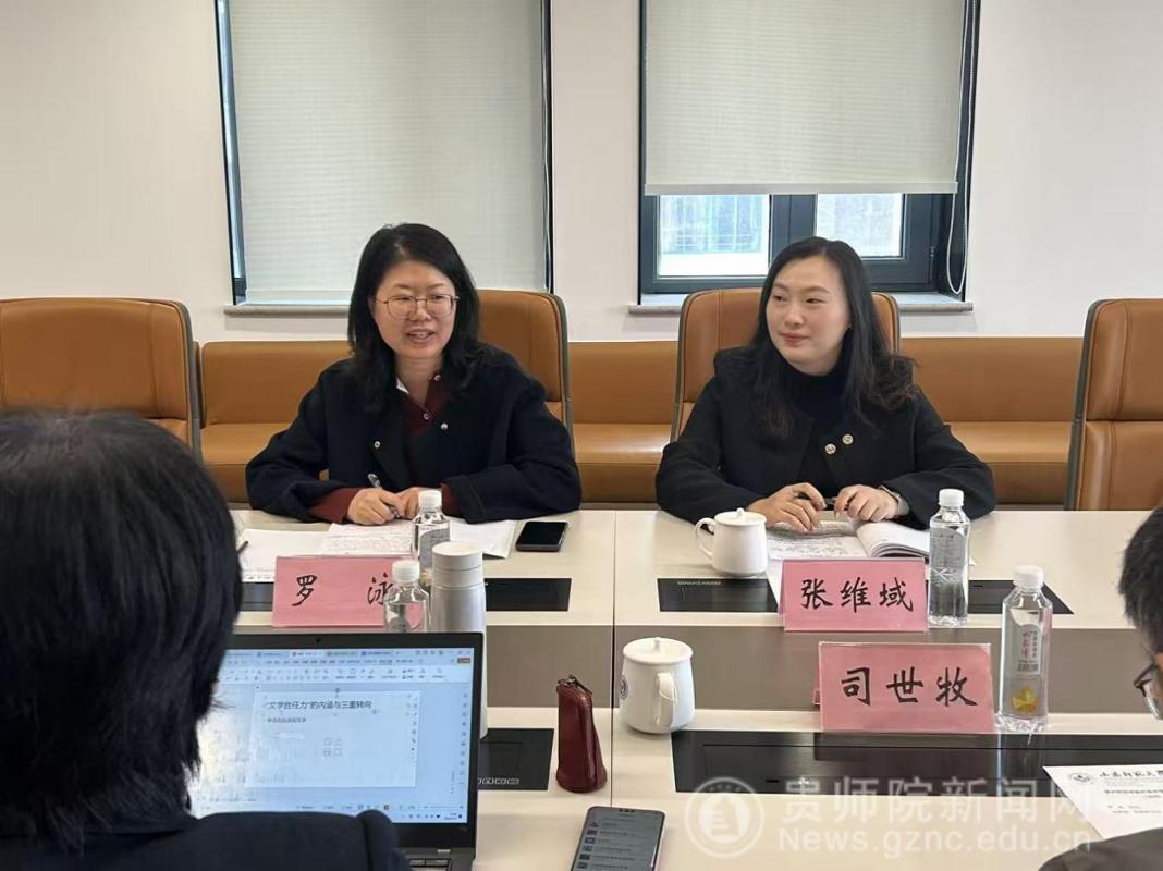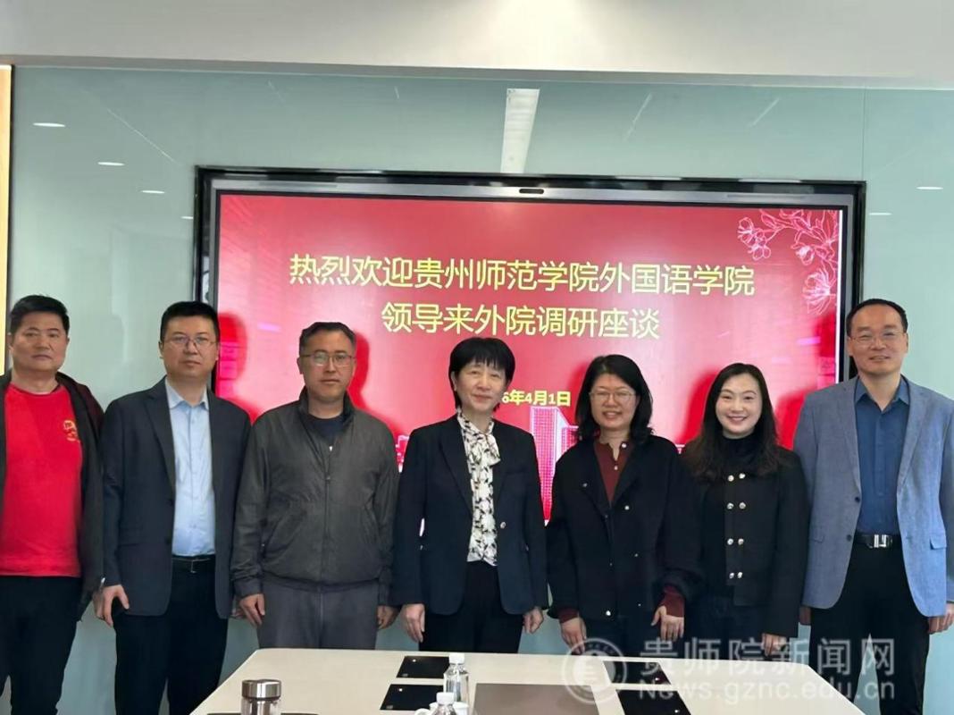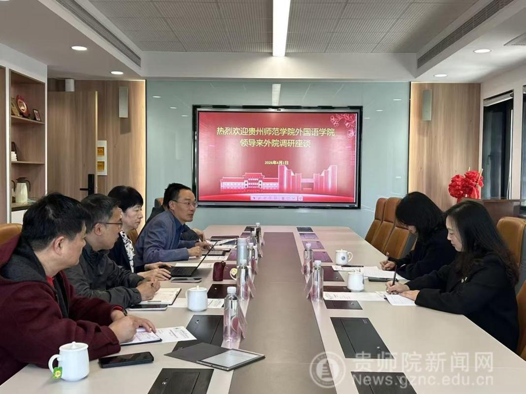 本网讯 4月1日上午,贵州师范学院外国语学院院长罗泳、党委副书记张维域赴山东师范大学外国语学院,开展校际交流访谈。双方围绕学院建设、人才培养、学生工作等核心议题深入研讨、坦诚交流,共商校际合作与学科高质量发展大计。山东师范大学党委书记王松、院长王卓、副书记司世牧、副院长翟乃海,办公室主任李源革出席座谈会。