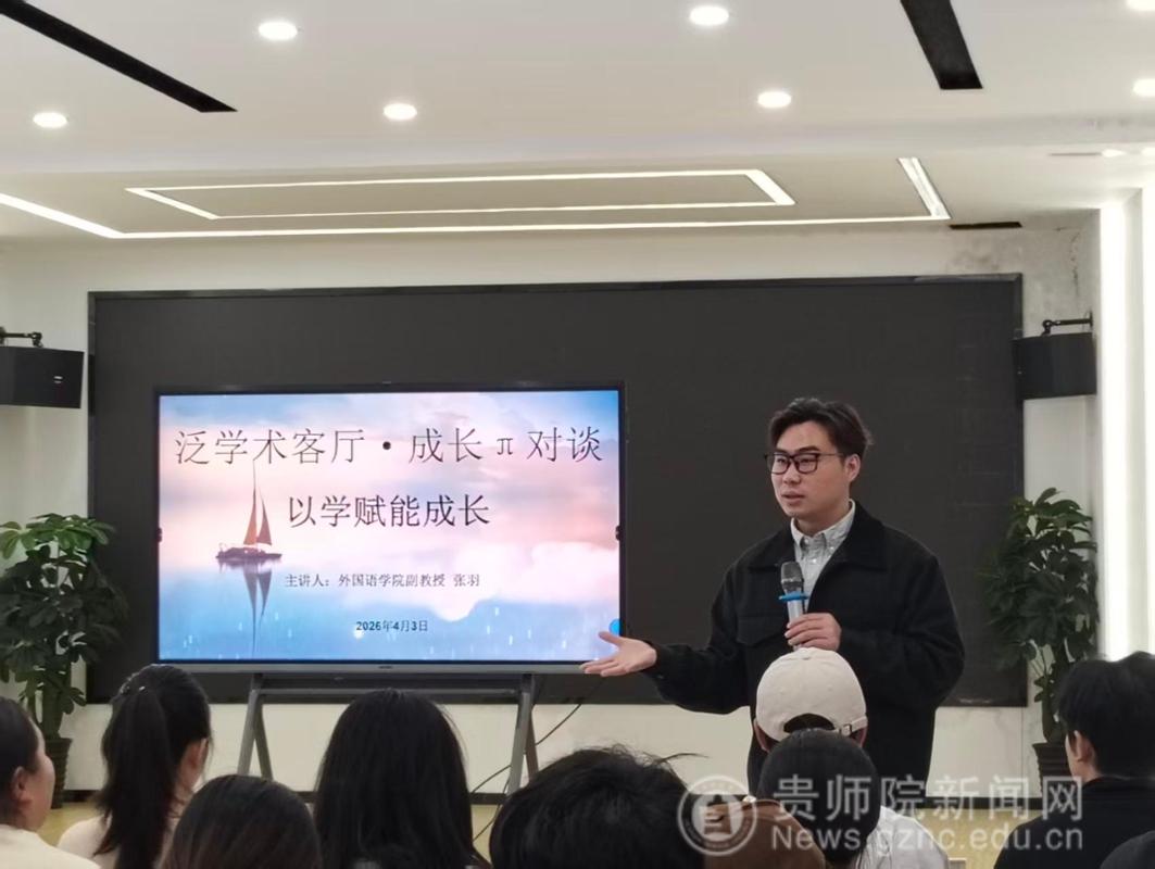 本网讯 2026年4月3日,外国语学院精心打造的“泛学术客厅・成长π对谈”主题讲座顺利开讲。本次活动紧扣AI时代发展脉搏,聚焦外语学习与职业发展核心议题,特邀学院副教授张羽担任主讲嘉宾,为英语专业学生答疑解惑、指引方向,助力学子精准规划成长路径。