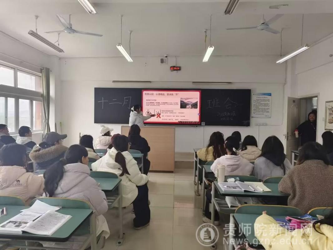 十二月,主题班会以“明法修身笃行,护航青春成长”为核心,覆盖“法治教育”“防毒拒毒”“青春健康教育”三大议题。法治教育环节,通过案例解析、知识宣讲等形式,将法治教育与思政教育深度融合,引导学生领会法治内涵、敬畏法律权威,提升用法律思维解决问题的能力;在防毒拒毒教育中,借助真实案例警示、互动讨论,让学生认清毒品对个人、家庭及社会的危害,增强拒毒自觉,主动远离不良诱惑;青春健康环节则聚焦情绪管理、人际交往等核心需求,通过经验分享与老师引导,帮助学生掌握心理调适方法,培育阳光心态与健康生活习惯。
