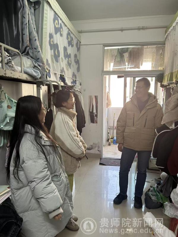 走访过程中,学院领导老师与同学们亲切座谈交流,围绕寒假前宿舍安全管理关键环节,系统强调安全注意事项。针对宿舍安全,明确严禁使用大功率电器、私拉乱接电线等危险行为,要求学生离校前逐项排查,彻底切断电源、关闭水源、锁好门窗,从源头杜绝安全隐患。针对离校出行,清晰告知学校最晚离校规定,提醒同学们科学规划行程、预留充足出行时间,避免因行程仓促引发意外;同时要求学生到家后第一时间通过班级群或电话向班主任报备平安,确保学院与学生信息畅通。此外,老师们还着重叮嘱学生,假期期间要时刻紧绷安全之弦,切实注意出行交通、居家防火防盗安全,远离危险区域与不良诱惑,全力保障自身生命财产安全。同时,辅导员老师们结合假期时间充裕的特点,叮嘱同学们合理规划寒假作息,扎实推进学业规划,针对性开展英语专业四八级、教师资格证等各类考级复习准备工作,利用假期查漏补缺、提升学业能力,做到劳逸结合、学有所获。