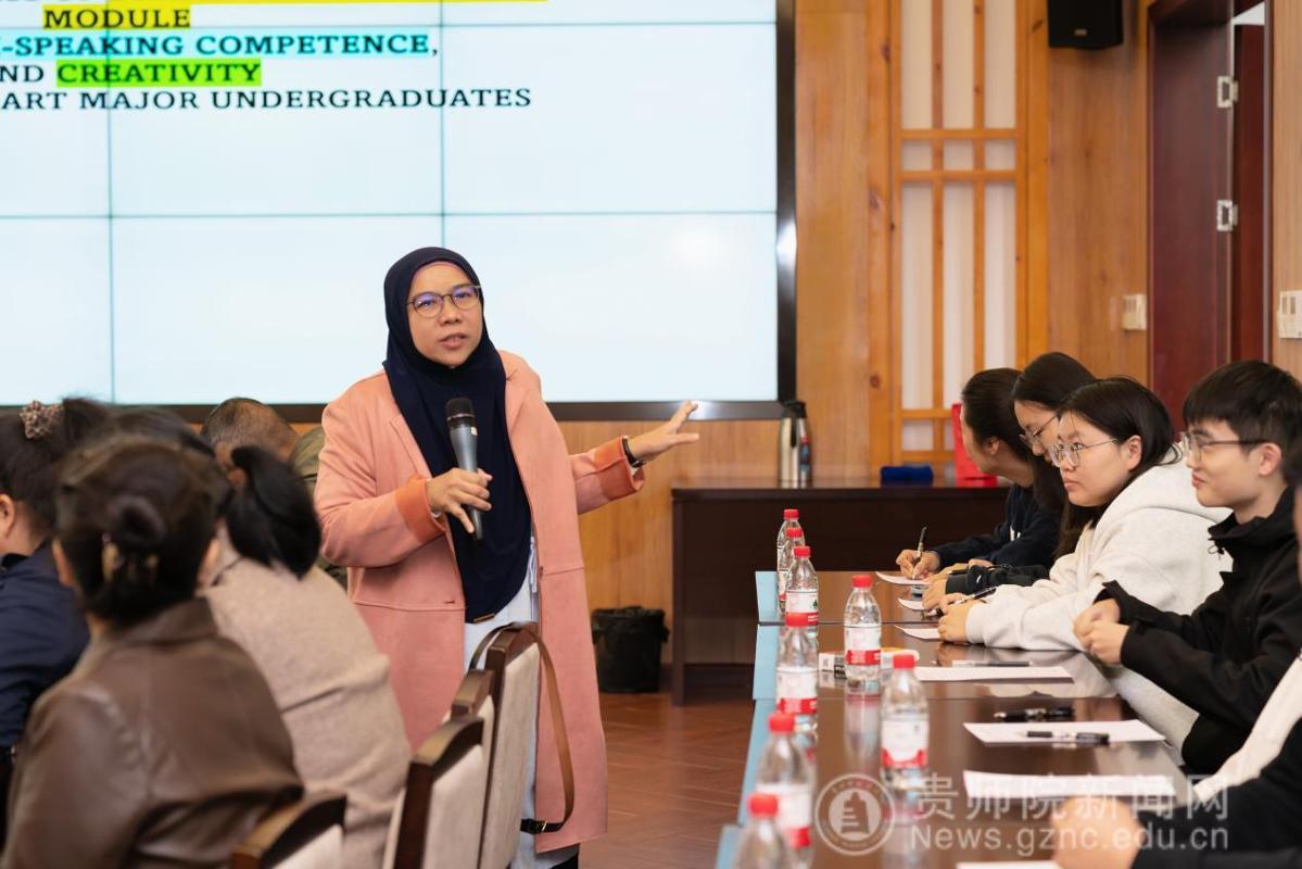 2025年10月28日上午,受外国语学院邀请,来自马来西亚理科大学教育学院的博士生导师Rohaya Abdullah教授在贵州师范学院印山书院山水讲堂为师生带来一场精彩讲座。讲座题为“混合式研究在实践中的设计与应用”。讲座由外国语学院副院长罗泳主持,外国语学院全体教师和各学院研究生参加了本次讲座。