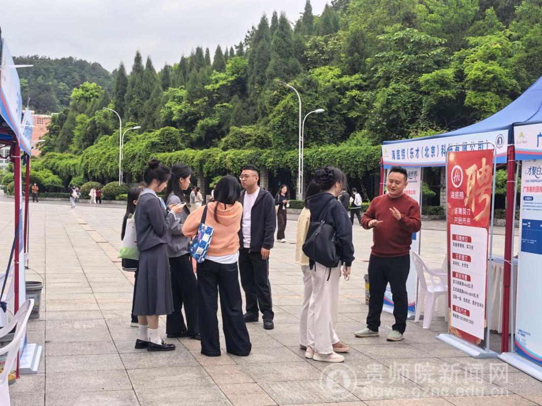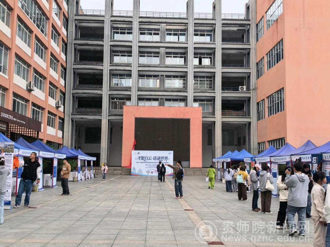 本网讯 为扎实推进2026届毕业生高质量充分就业,搭建校企精准对接平台,4月22日,由贵阳市白云区人力资源和社会保障局与外国语学院联合主办的毕业生专场招聘会在我校凤凰广场顺利举行。本次招聘会汇聚省内外30家优质企业,提供涵盖教育、科技、新能源、医疗、文化传媒等多个领域的就业岗位,为毕业生搭建了高效、便捷的求职通道,助力学子稳就业,就好业。